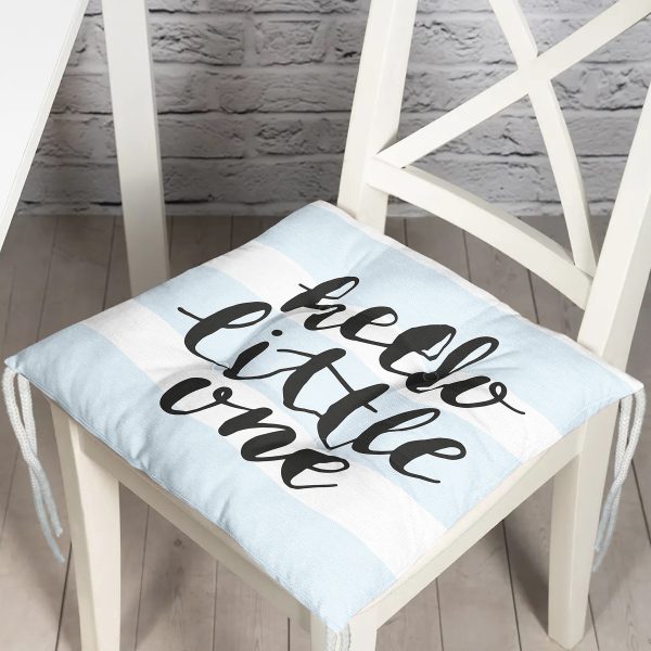 Mavi Beyaz Hello Little One Yazılı Özel Tasarımlı Dijital Baskılı Çocuk Odası Pofuduk Sandalye Minderi