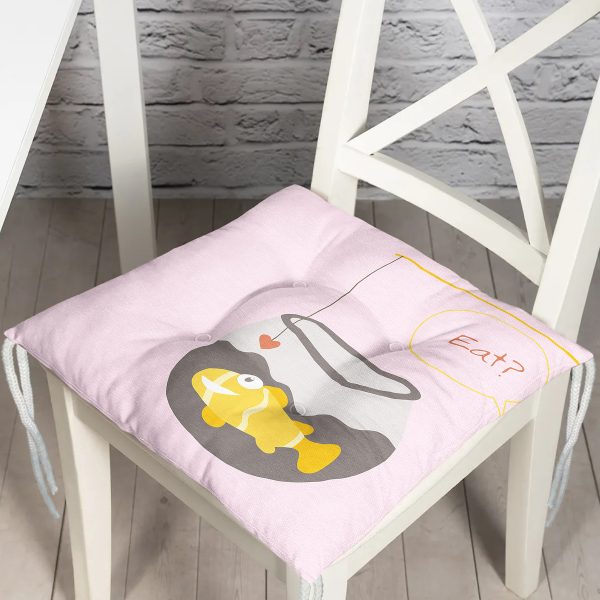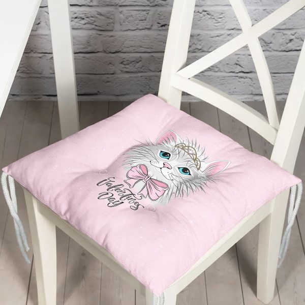 Pembe Zemin Tatil Temalı Sevimli Kedi Desenli Dijital Baskılı Modern Pofuduk Sandalye Minderi