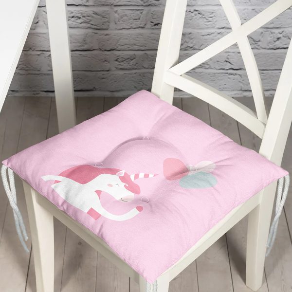 Realhomes Pembe Zeminli Magic Unicorn Tasarımlı Modern Pofuduk Sandalye Minderi