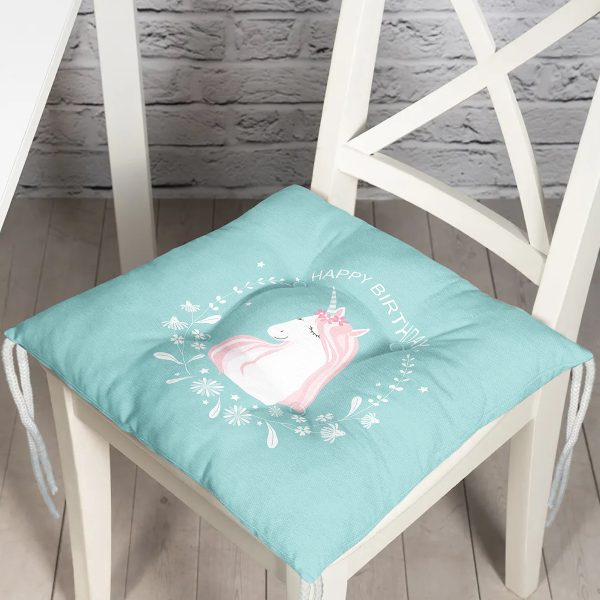 Realhomes Yeşil Zeminde Unicorn At Tasarımlı Modern Pofuduk Sandalye Minderi