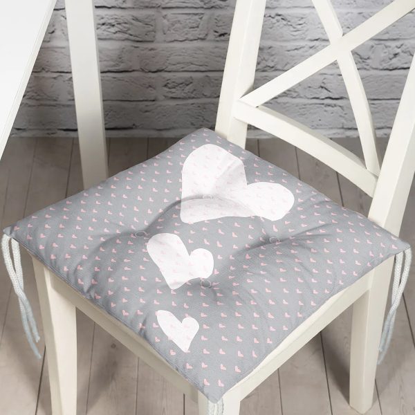 Gri Zemin Puanlı Kalp Motifli Özel Tasarımlı Dijital Baskılı Çocuk Odası Pofuduk Sandalye Minderi