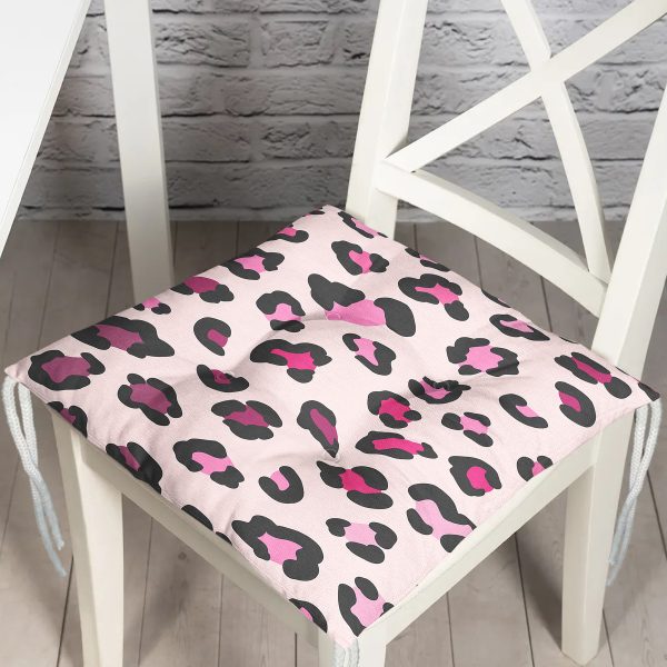 Renkli Leopar Desenli Özel Tasarımlı Dijital Baskılı Çocuk Odası Pofuduk Sandalye Minderi