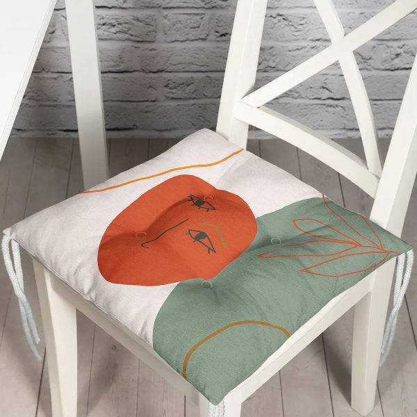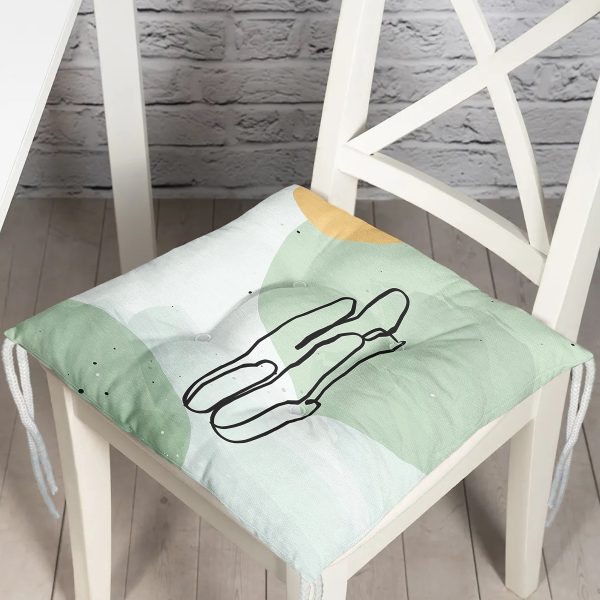 Soft Renkli Onedraw Çizimli Dijital Baskılı Modern Pofuduk Sandalye Minderi