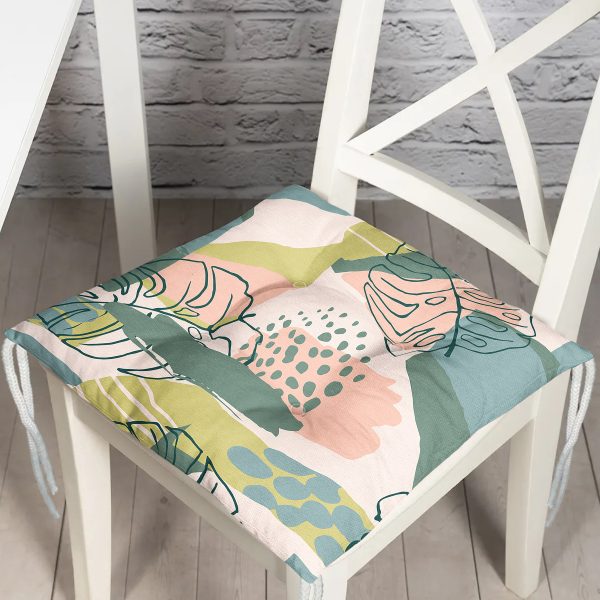 Pastel Zemin Üzerinde Yaprak Desenli Dijital Baskılı Modern Pofuduk Sandalye Minderi