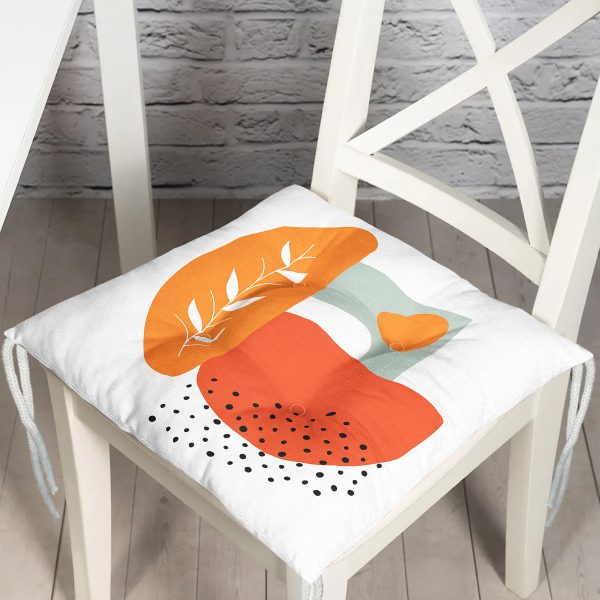 Soft Renkli Zeminde Onedraw Çizimli Yaprak Motifli Dijital Baskılı Modern Pofuduk Sandalye Minderi