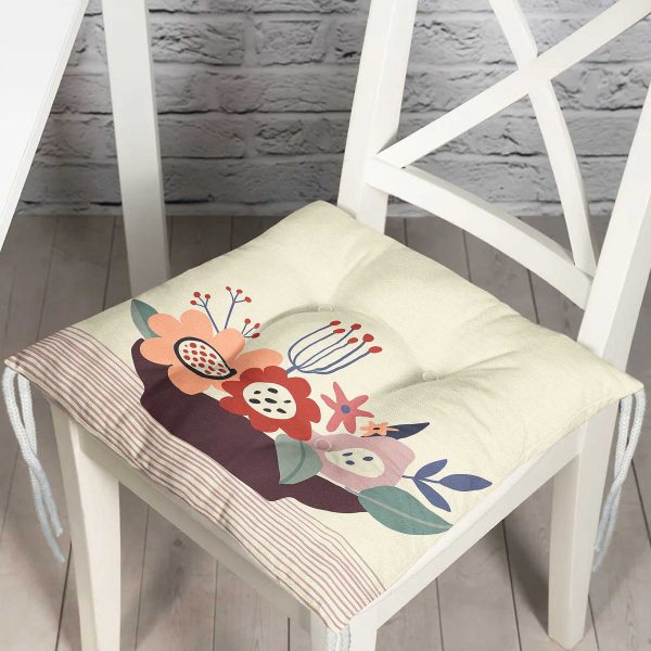 Demet Çiçek Dijital Baskılı Pofuduk Sandalye Minderi