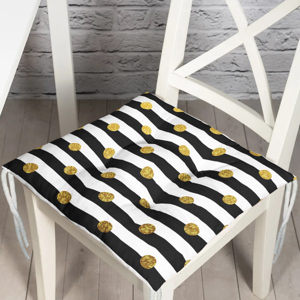 Beyaz Zemin Üzerinde Gold Detaylı Puantiye Dijital Baskılı Modern Pofuduk Sandalye Minderi