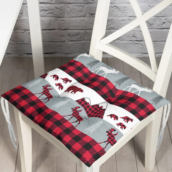 Beyaz Zemin Üzerinde Ekose Desenli Geyik Desenli Dijital Baskılı Modern Pofuduk Sandalye Minderi