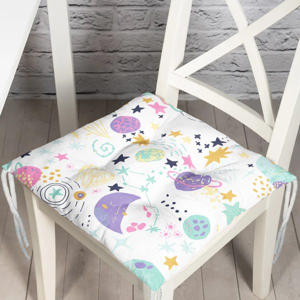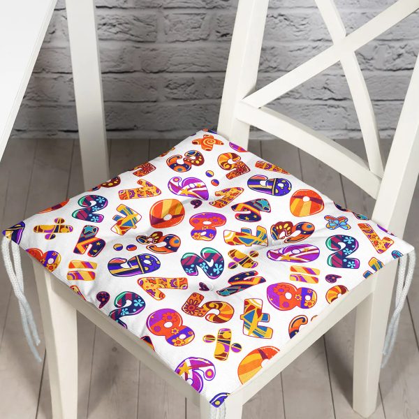 Renkli Zeminli Onedraw Çizimli Dijital Baskılı Modern Pofuduk Sandalye Minderi