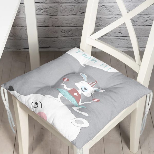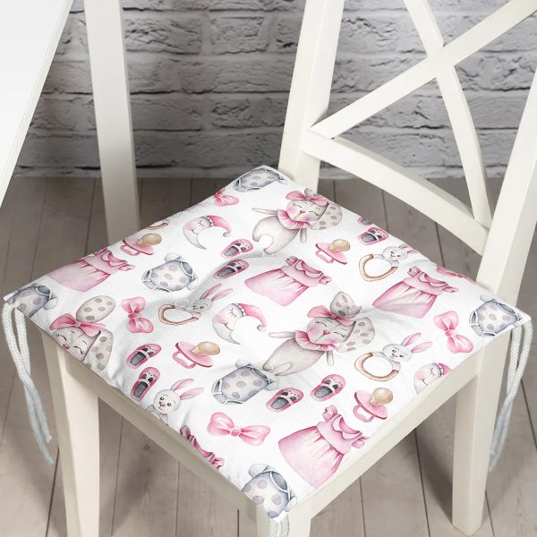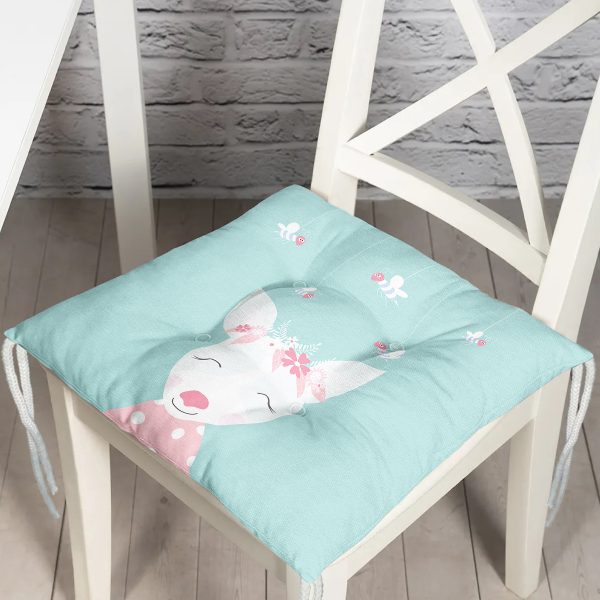Sevimli Bebek Tavşan Motifli Dijital Baskılı Özel Tasarım Modern Pofuduk Sandalye Minderi