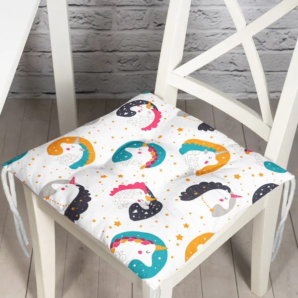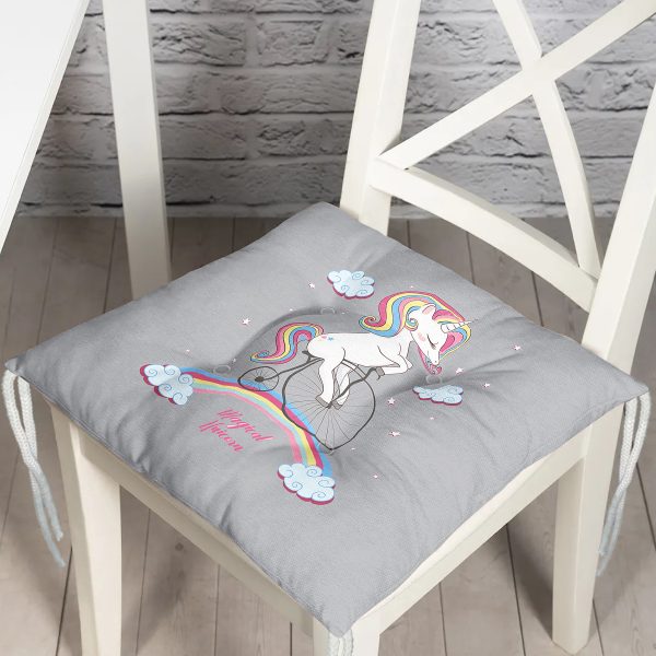 Unicorn Motifli Dijital Baskılı Özel Tasarım Modern Pofuduk Sandalye Minderi