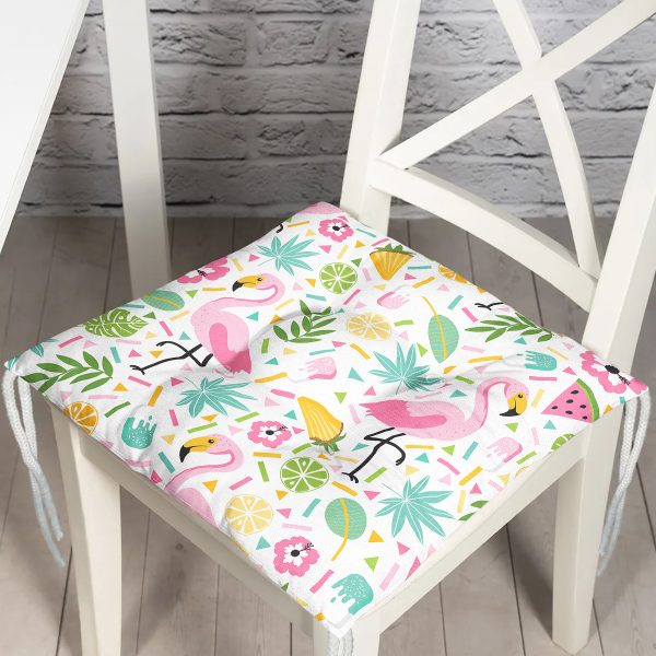 Pembe Flamingo Motifli Dijital Baskılı Özel Tasarım Modern Pofuduk Sandalye Minderi