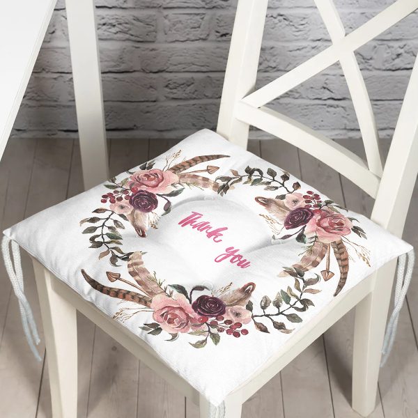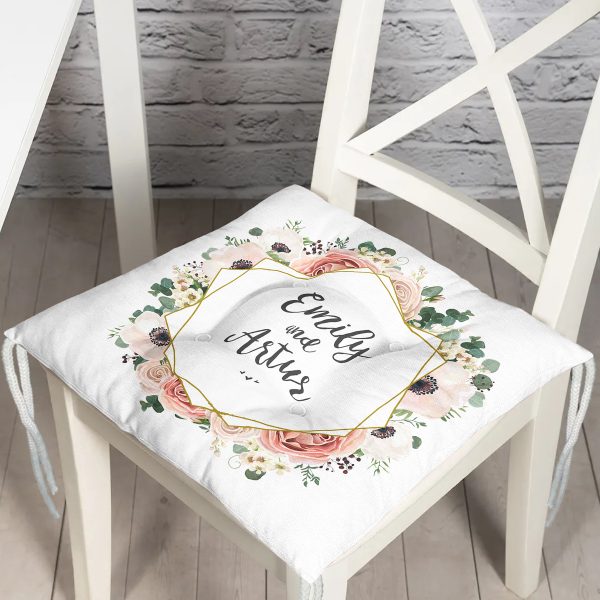Özel Tasarım İsimli Çiçek Desenli Dijital Baskılı Pofuduk Sandalye Minderi