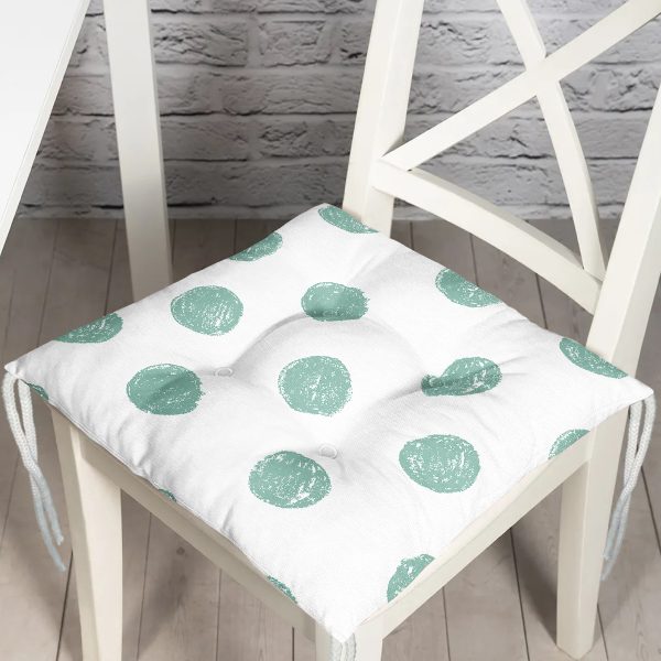Mint Yeşili Puantiyeli Dijital Baskılı Modern Pofuduk Sandalye Minderi