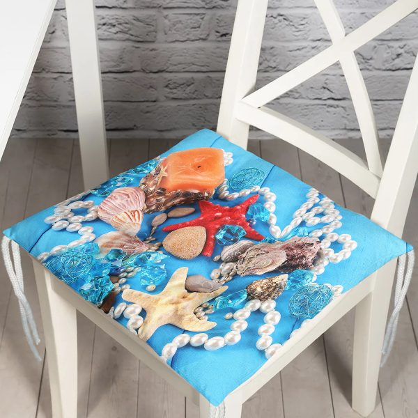 Mavi Zeminli Deniz Yıldızları Özel Tasarım Modern Pofuduk Sandalye Minderi