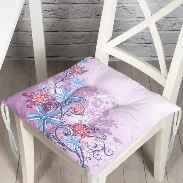 Lila Zeminde Çiçek Motifli Dijital Baskılı Modern Pofuduk Sandalye Minderi