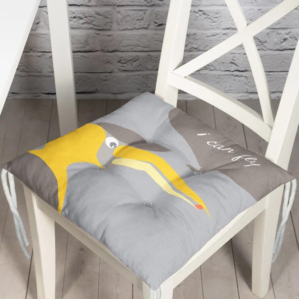 Gri Zeminde I Can Fly Leylek Motifli Bebek Odası Pofuduk Sandalye Minderi