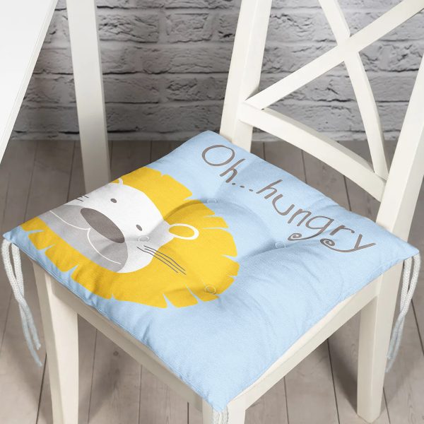 Mavi Zeminde Hungry Aslan Motifli Dijital Baskılı Bebek Odası Pofuduk Sandalye Minderi