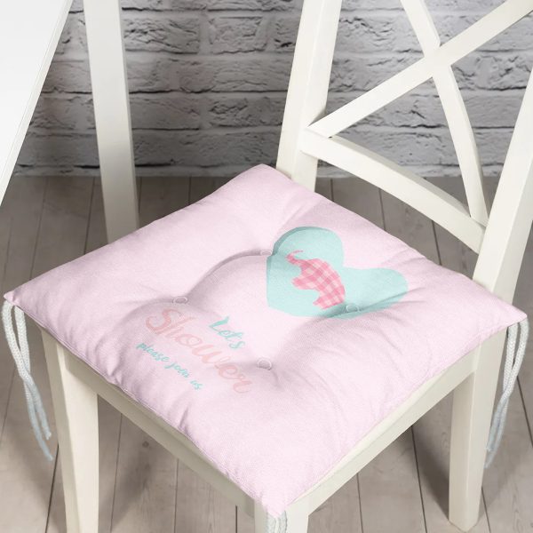Pembe Zemin Let’s Shower Yazılı Özel Tasarımlı Dijital Baskılı Çocuk Odası Pofuduk Sandalye Minderi