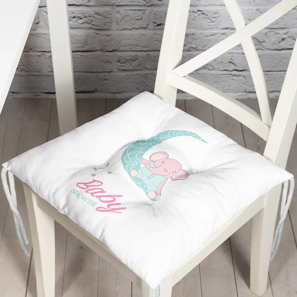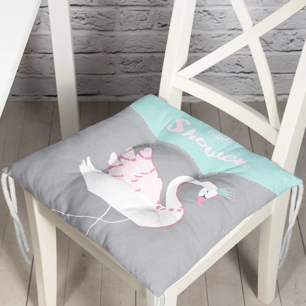 Baby Shower Temalı Kuğu Desenli Özel Tasarımlı Dijital Baskılı Çocuk Odası Pofuduk Sandalye Minderi