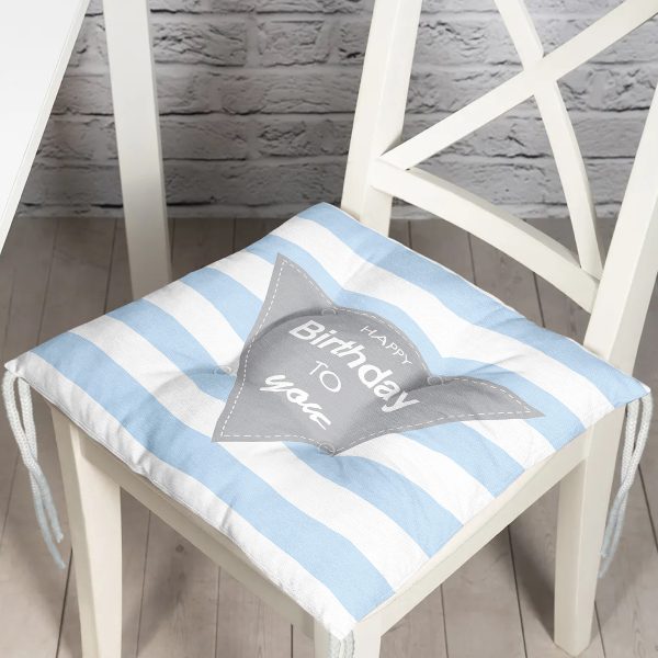 Mavi Çizgili Doğum Günü Temalı Özel Tasarımlı Dijital Baskılı Çocuk Odası Pofuduk Sandalye Minderi