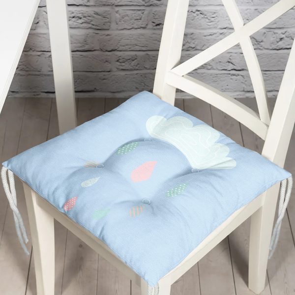 Mavi Zeminde Bulut Desenli Özel Tasarımlı Dijital Baskılı Çocuk Odası Pofuduk Sandalye Minderi