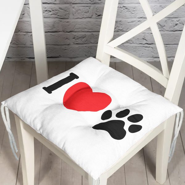 I Love Dijital Baskılı Pati İzi Modern Pofuduk Sandalye Minderi