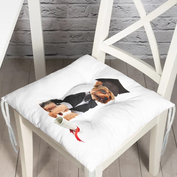 Mezuniyet Kıyafetli Köpekçik Dijital Baskılı Modern Pofuduk Sandalye Minderi