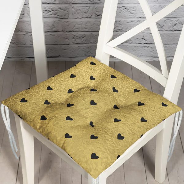 Gold Zeminde Beyaz Ok Motifli Dijital Baskılı Modern Pofuduk Sandalye Minderi