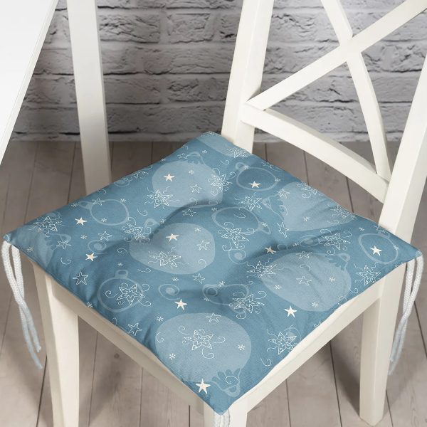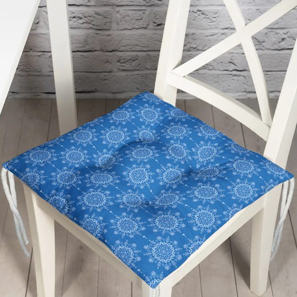 Mavi Zeminli Kar tanesi Desenli Dijital Baskılı Modern Pofuduk Sandalye Minderi