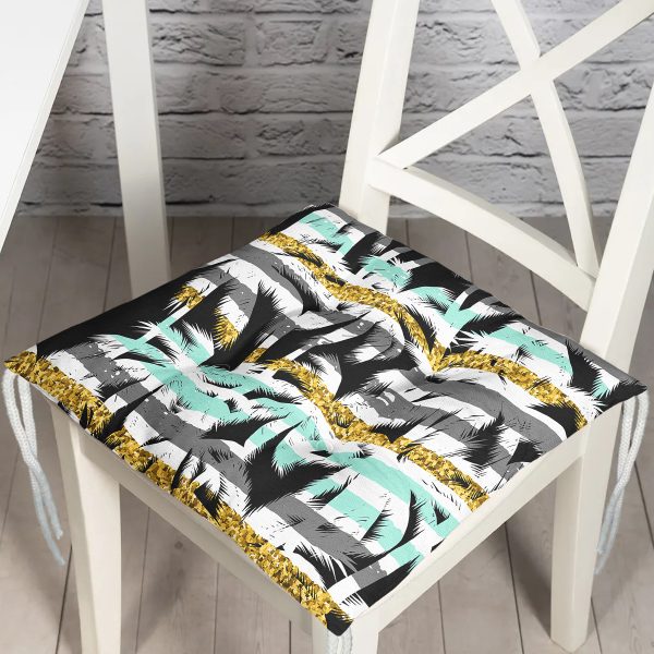 Palmiye Esintisi Temalı Dijital Baskılı Pofuduk Sandalye Minderi