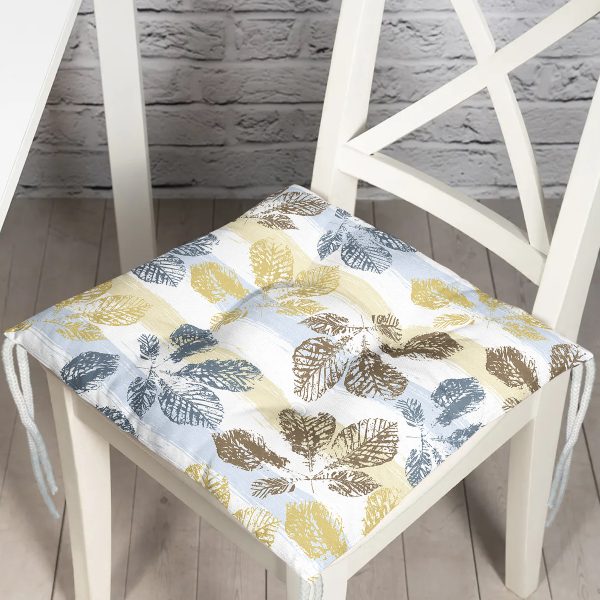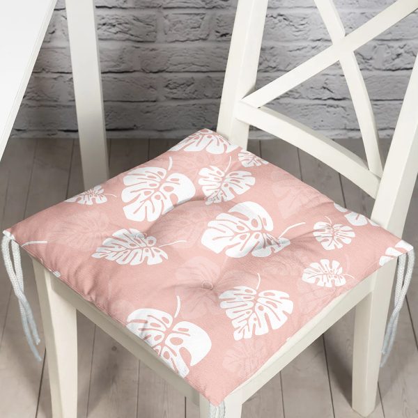 Pastel Zemin Üzerinde Beyaz Yaprak Desenli Dijital Baskılı Modern Pofuduk Sandalye Minderi