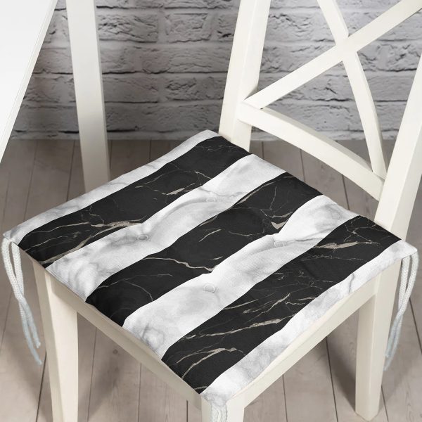 Mermer Zeminli Siyah Çizgili Dijital Baskılı Modern Pofuduk Sandalye Minderi