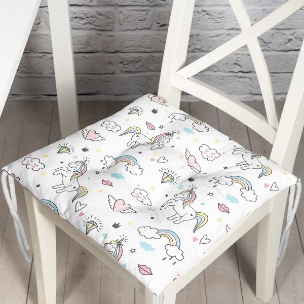 Realhomes Unicorn At Tasarımlı Dijital Baskılı Modern Pofuduk Sandalye Minderi