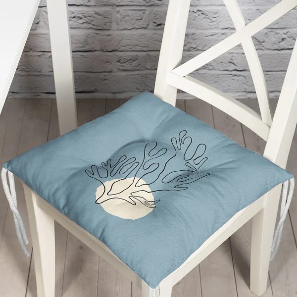 Soyut Çizimli Çiçek Tasarımlı Dijital Baskılı Modern Pofuduk Sandalye Minderi