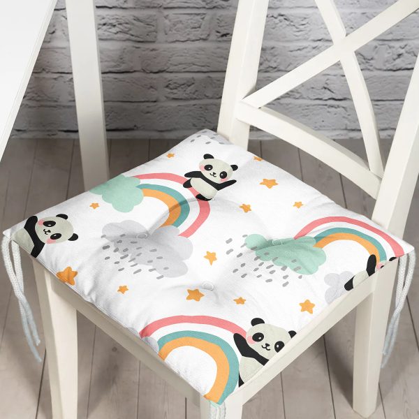 Panda Gökkuşağı Sevimli Tasarım Dijital Baskılı Özel Tasarım Modern Pofuduk Sandalye Minderi