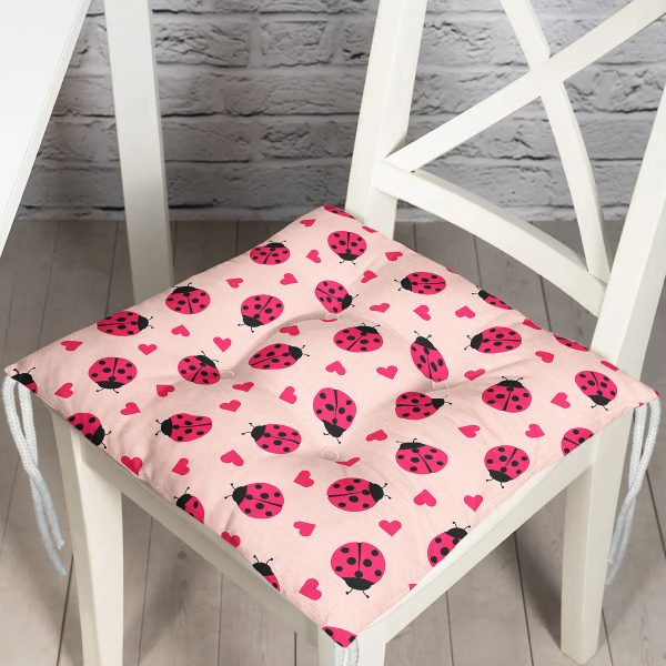 Uğur Böceği Ve Kalp Tasarımlı Dijital Baskılı Özel Tasarım Modern Pofuduk Sandalye Minderi