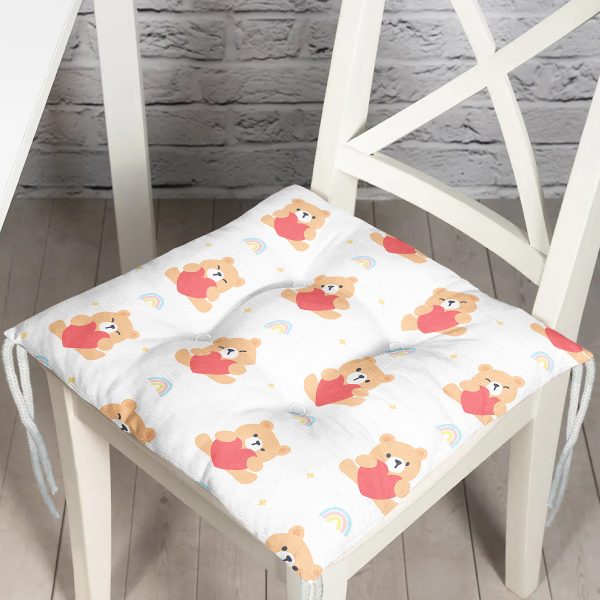 Kalp Tutan Ayıcık Motifli Dijital Baskılı Özel Tasarım Modern Pofuduk Sandalye Minderi