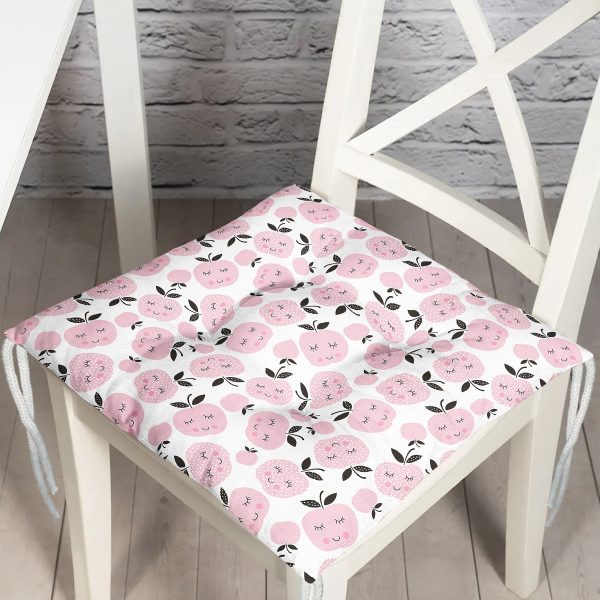 Pembe Gülümseyen Elmalar Motifli Dijital Baskılı Özel Tasarım Modern Pofuduk Sandalye Minderi