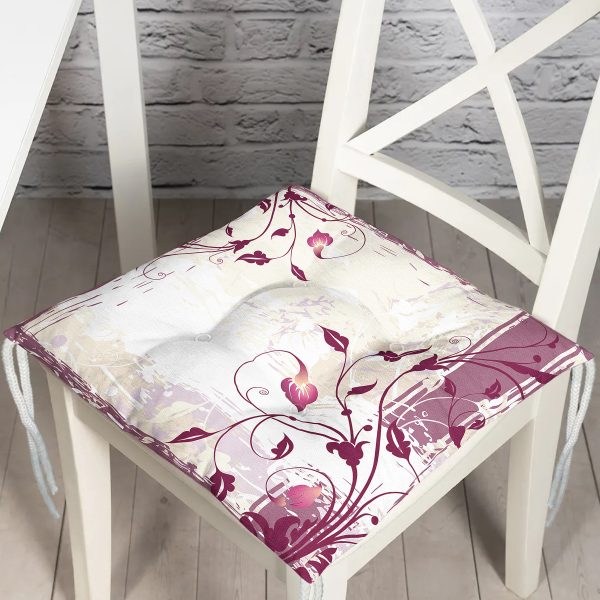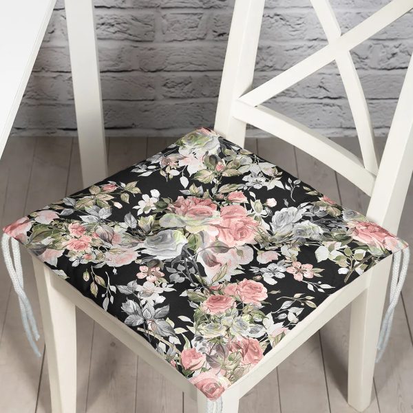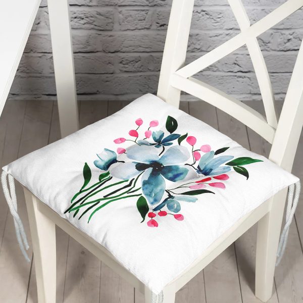 Modern Çiçek Desenli Dijital Baskılı Modern Pofuduk Sandalye Minderi