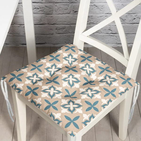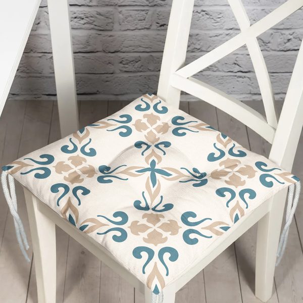 Mavi Cami Çinisi Temalı Dijital Baskılı Pofuduk Sandalye Minderi