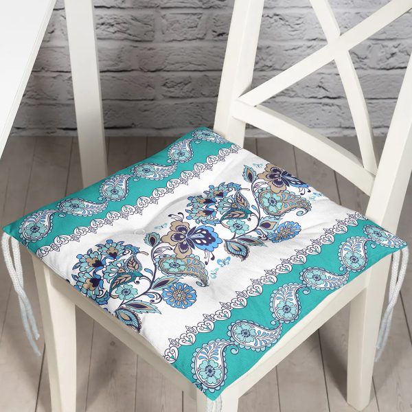 Çanlı Çelenk Tasarımlı Dijital Baskılı Modern Pofuduk Sandalye Minderi
