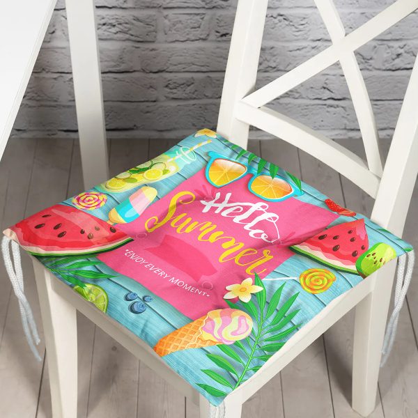 Hello Summer Özel Tasarımlı Modern Dijital Pofuduk Sandalye Minderi