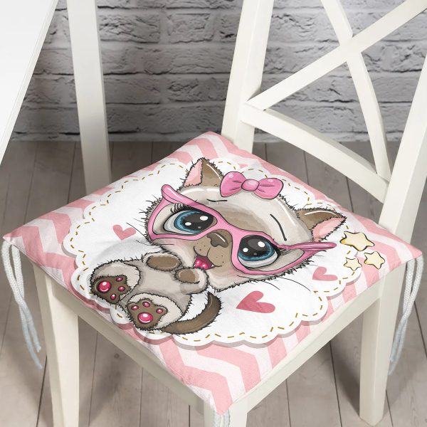 Kedicik Özel Tasarımlı Dijital Baskılı Modern Pofuduk Sandalye Minderi