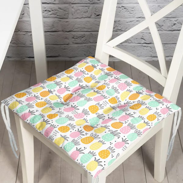Pastel Renkte Ananaslar Özel Tasarım Modern Pofuduk Sandalye Minderi