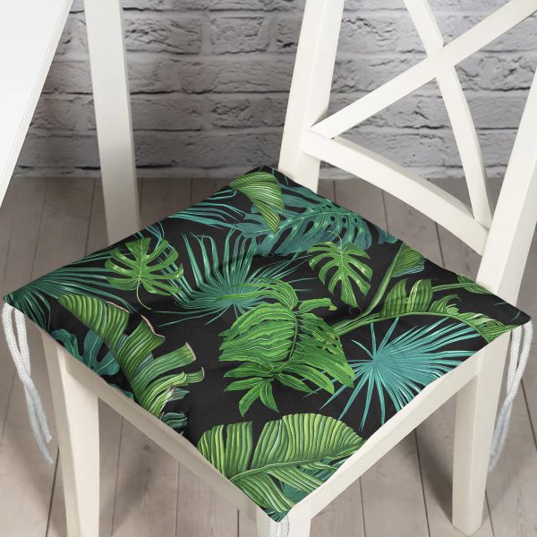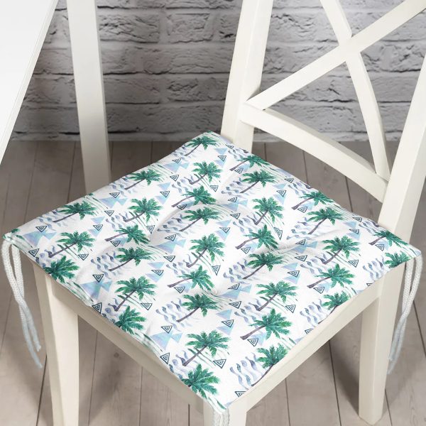 Özel Tasarım Palmiye Motifli Dijital Baskılı Pofuduk Sandalye Minderi
