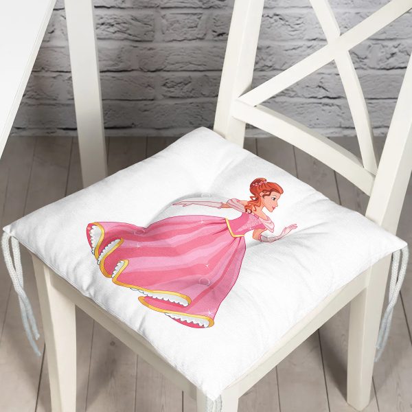 Realhomes Beyaz Zeminde Pamuk Prenses Çizgi Film Desenli 3D Modern Pofuduk Sandalye Minderi