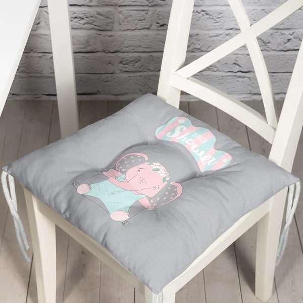 Gri Zemin Salıncak Ve Fil Motifli Özel Tasarımlı Dijital Baskılı Çocuk Odası Pofuduk Sandalye Minderi