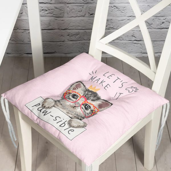 Let’s Make It Kedi Desenli Modern Pofuduk Sandalye Minderi