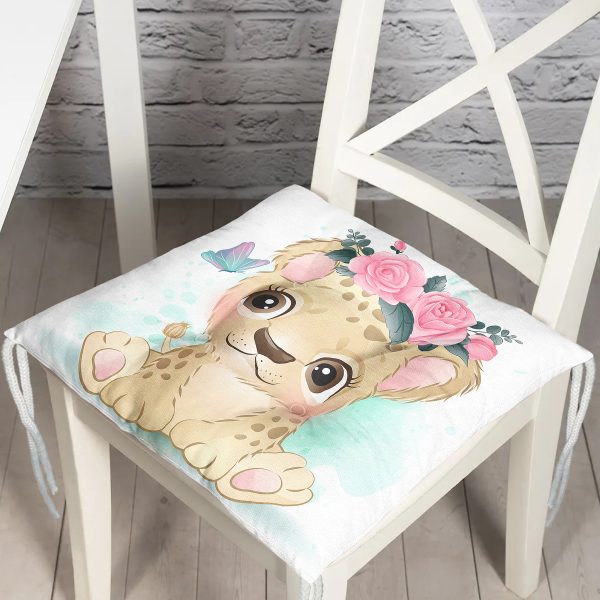 Sevimli Bebek Aslan Çocuk Odası Dijital Baskılı Modern Pofuduk Sandalye Minderi
